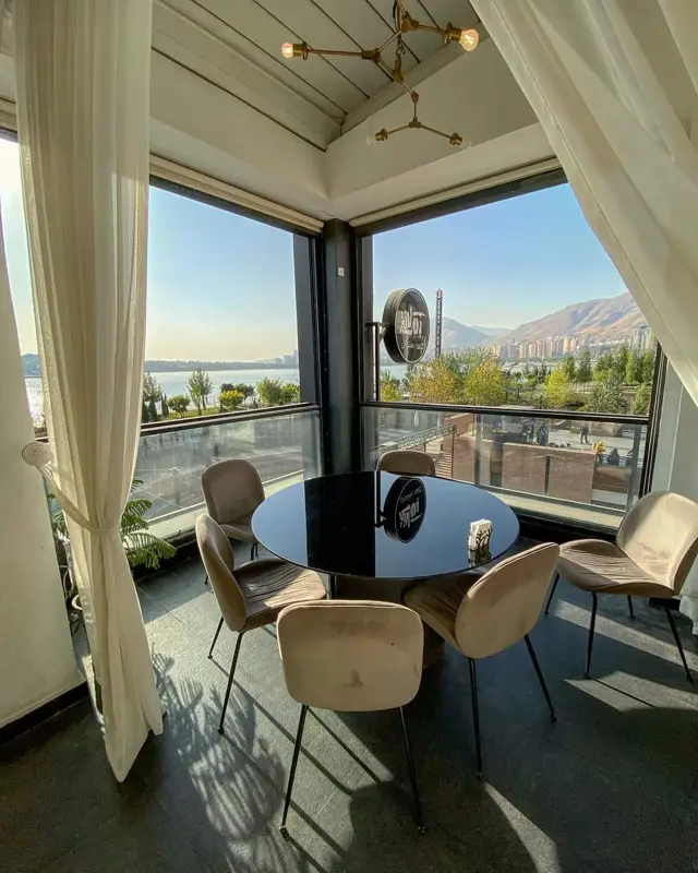 گالری تصاویر بلک لانژ ترکیبی از نماهای داخلی لوکس، نورپردازی خیرهکننده و منظره دریاچه را به نمایش میگذارد و حس تجربهای مدرن و خاص را منتقل میکند.